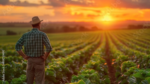 farmer, field, sunset, agriculture, crop, rural, sky, horizon, landscape, farm, countryside, nature, gold, hours, green, evening, man, standing, hat, looking, farming, harvest, land, sun, ray, bright, beautiful, farmland, pasture, meadow, agricultural, grow, produce, dirtied, planting, harvesting, life