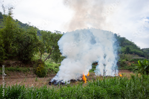 Farmers' bonfires and smoke from burning grass and weeds sometimes spread the wildfire. Farmers, farmers with mountainous areas in Thailand, often solve the problem by burning. Causing toxic dust
