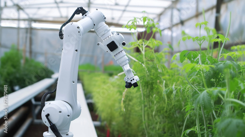 Farming activities background with eco-friendly robots. robot farmers. Advanced, efficient and cost-reducing agriculture with industry 5.0 technology.