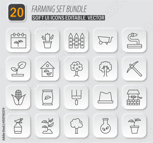 farming, agriculture, icon, vector, farm, set, bundle, soft, editable, collection, gardening, tool, plant, nature, rural, design, graphic, element, equipment, growth, harvest, countryside, organic, spring, summer, autumn, landscape, cultivated, sustainable, lifestyle, agricultural, natural, outdoors, cultivate, cultivation, field, season, botanical