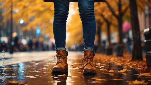 fashion, autumn, rain, street, water spray, leaf, stylish, footwear, puddle, urban, weather, seasonal, stroll, wet, pavement, city, autumn, waterproof, raincoat, protection, comfortable, trendy, pedestrian, atmospheric, dynamic, energetic, colourful, crisp, beautiful, photogenic, modern, aesthetic, inspiring, engaging, high-quality, premium, lifestyle, walking, boot, shoe, trend, colours, design, fashionable, urban scene