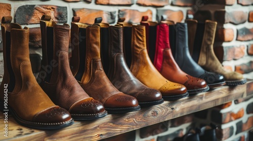 fashionable, boot, dark, brown, arranged, brick, wall, stylish, urban, vibe, leather, footwear, classic, shoe, business, male, style, new, luxury, clothing, elegance, design, modern, man, collection, background, black, casual attire, foot, sale, shop, store, pair, shiny, nobody, boutique, closeup, retail, row, expensive, accessory, market, vintage, hand-made, sole