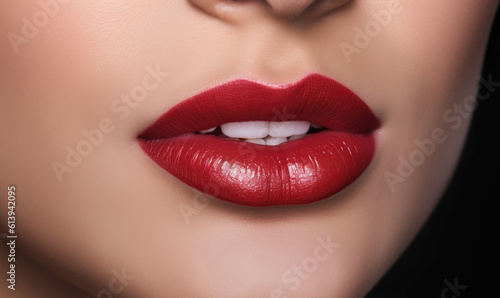 fashionable lips and mouth of a young female model. AI GENERATIVE