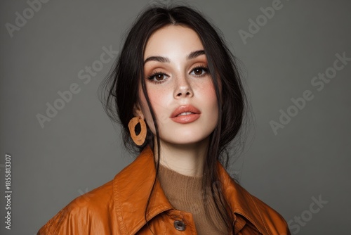 fashion, woman, brunette, style, outfit, posing, indoor, portrait, modern, make-up, earring, beauty, confidence, chic, hair, trendy, brown, aesthetic, expression, elegance, glamourous, young, casual attire, stunning, simplicity, indoor, attracted, personality, portraiture, stylish, fashionable, character, accessory, detailed, warmth, contemporary, relaxed, visual, composition, design, attire, mood, charme, look, grace