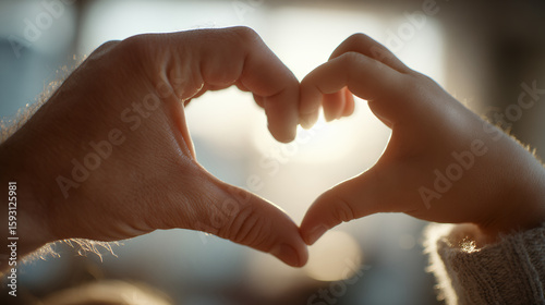 Father and Daughter Hands Forming Heart Shape with Backlit Background