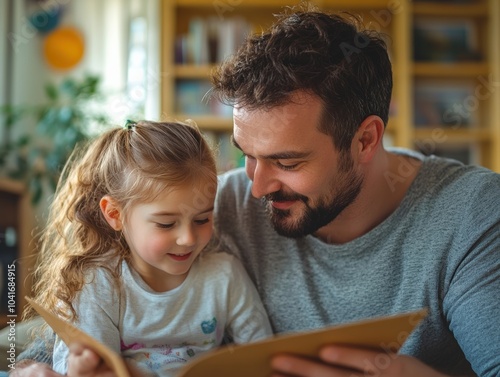 Father and Daughter Sharing a Special Moment Looking at a Photo Album Together