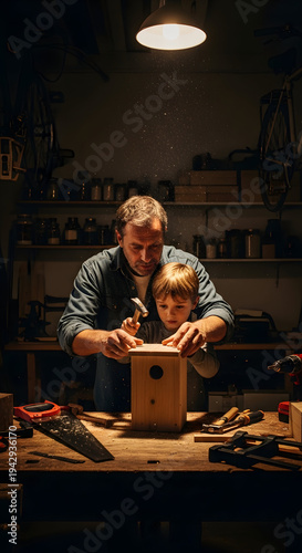 father, son, building, birdhouse, family, bonding, carpenter's shop, hobby, bricolage, project, craftsmanship, skill, learning, together, childhood, memory, home, workshop, manual, labor, creative, activity, living, eltern, children, shared, life events, wooden, construction, tool, equipment, indoor, weekend, making, something, fatherhood, role, development, skill, togetherness, concept, time, improvement, art, education, teaching, helping