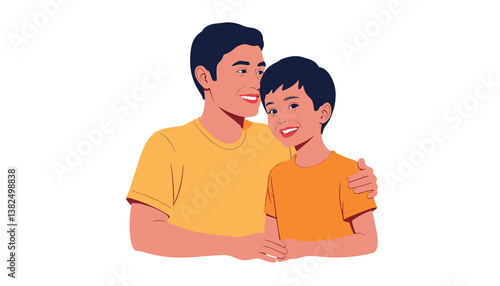 father, son, smiling, hugs, happiness, family, love, bonding, together, cheerful, eltern, children, male, joy, affection, young, childhood, human relationships, warmth, connection, portrait, illustration, friendship, fun, leisure, intimate, joyfulness, positivity, support, caring, playful, comfort, casual attire, coloured, character, laughter, enjoyment, lifestyle, youth, innocence, trust, diverse, ethnic, moment, sharing, smile, family time
