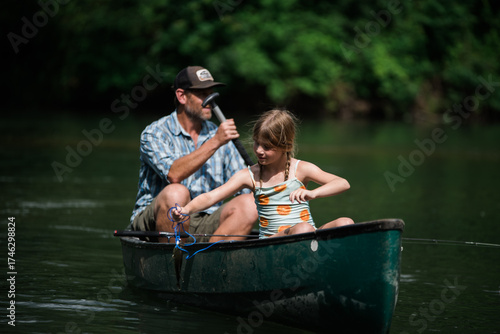 canoe, fishing, river, fish, girl, man, paddle, outdoors, water, nature, summer, catch, boat, family, bonding, adventure, wild, serene, together, recreation, childhood, calm, activity, sport, teamwork, forest, green, splash, rod, casual attire, life vest, wet, fun, exploration, natural, scenic, day, calmness, aquatic, freedom, joy, environment, fresh water, connection, patience, motion, leisure, bait, eltern, playful, oklahoma, us, preteen, preteen, two people, male, female, white