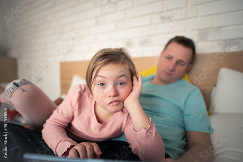 down's syndrome, children, father, home, lie, eltern, wake up, childhood, fatherhood, love, person, bed, morning, happy, care, father, day, caucasian, family, lifestyle, indoor, children, man, daughter, father, disabled, father, emotion, parenthood, fun, together, togetherness, down, disability, girl, rest, small, fathers day, parenting, cheerful, human relationships, pajama, grimace