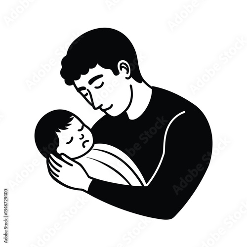 father, baby, infant, children, father, eltern, love, gentle, tender, caring, sleep, sleeping, hold, arm, bond, family, parental, protection, warmth, comfort, peaceful, serene, illustration, drawing, black, white, monochrome, silhouette, simple, minimalist, vector, graphic, design, art, artwork, image, picture, fatherhood, fatherhood, newborn, toddler, care, nurture, affection, intimacy, human relationships, portrait, icon, symbol