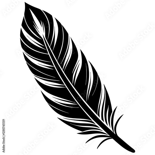 Feather Silhouette Vector Icon White Background.