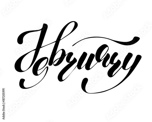 February month - hand lettering inscription to design, black and white ink calligraphy