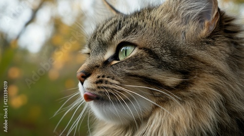 cat, calico, nature, autumn, pet, animal, domestic, eye, green, wildlife, grass, leaf, timberland, trendy, seasonal, fall, foliage, cosy, setting, calm, atmosphere, portrait, felino, photo, colourful, scenery, rustic, wilderness