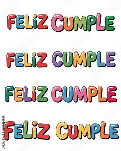 Feliz Cumple sign lettering calligraphy group of set collection or bundle vector illustration, colorful Happy Birthday in Spanish language Print