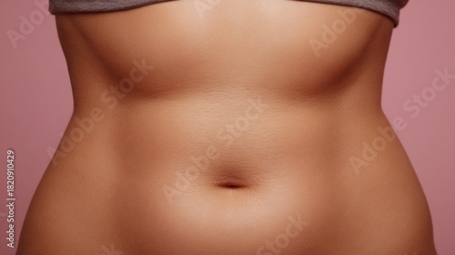 Female Abdomen Showcasing Soft Fat Folds Against a Neutral Pastel Background in a Professional Stock Style Setting Before Weight Loss Journey