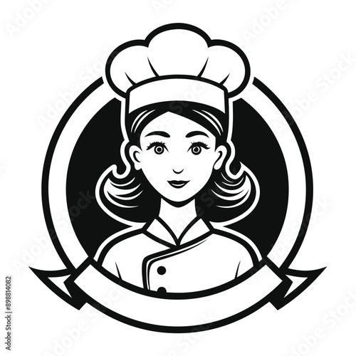 Female Chef with Dish in Hand Logo Icon Vector on White Transparent Background for Restaurant Hotel