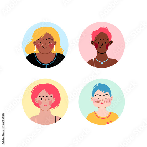 Female diverse faces of different ethnicity, different skin and different bodies