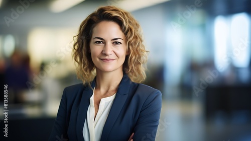 Female Executive Portrait in Blurred Office Background, Executive, portrait, blurred office