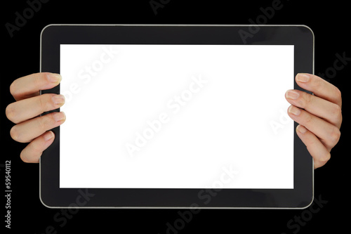 hand, tablet, computer, template, frame, touch screen, screen, device, multimedia, display, touch, banner, object, isolated, digital, blank, presentation, empty, concept, communication, cyberspace, pda, portable, contraption, background, web, electronic, business, technology, touchpad, wireless, information, black, media, closeup, gesture, showcase, advertise, female, holding, horizontally