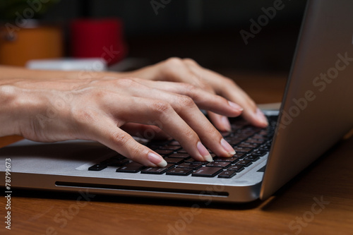 Female hands typing on a laptop