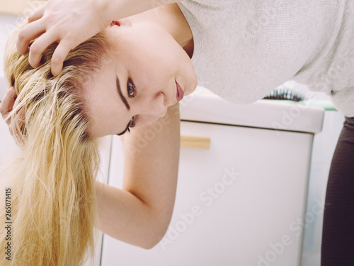 hair, woman, problem, looking, loss, cleaving, damaged, head, long, care, girl, health, sad, person, bathroom, blond, blond, problem, dandruff, unhappy, scratching, treatment, scalp, coiffure