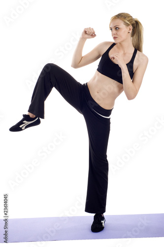 active, activity, art, athlete, athletic, background, blond, body, caucasian, defensive, exercise, female, feminine, fight, fit, fitness, full, girl, kick, kickboxing, martial, muscle, people, person, self protection, sport, sporty, strong, white, woman, physical exercise