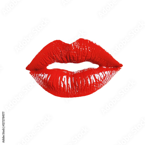 Female lips coated in vibrant red lipstick stand out against a transparent background, highlighting a statement of confidence and allure. This design can enhance various creative projects