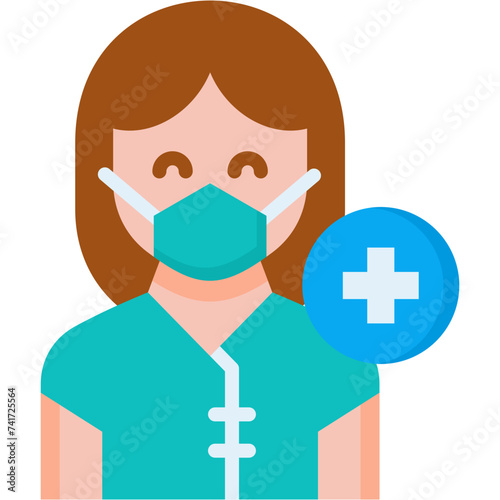 mask, patient, sick, virus, doctor, woman, female, icon, flat