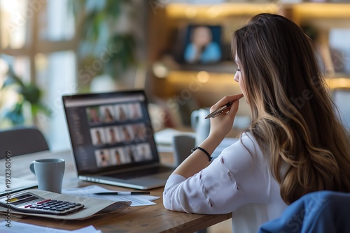 Female Professional Working on Laptop with Video Conference in Modern Home Office