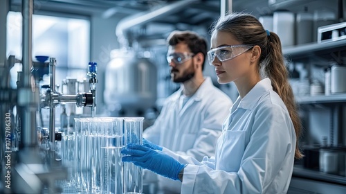 laboratory, scientist, female, coat, white, test, tube, examining, experiment, research, science, glassware, liquid, blue, glove, safety, professional, equipment, laboratory, medicals, chemistry, analysis, biotechnology, innovation, discovery, technology, goggles, goggles, protective, work, concentrated, serious, task, sharpened, careful, result, datum, facility, sterile, clean, environment, modern, bright