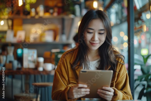 woman, sitting, table, using, tablet, computer, technology, digital, device, cyberspace, female, businesswoman, working, online, communication, modern, office, workplace, wireless, connection, touch screen, display, keyboard, portable, electronic, surfing, web, information, datum, contraption, smart, screen, application, app, electronic, person, professional, seated, desk, chair, laptop, mobile, white-collar, typing, input, user, interface