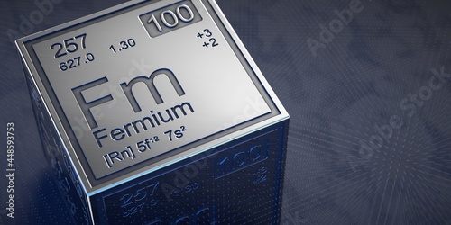fermium, fm, radioactive, synthetic, element, periodic table, molecular, atom, symbol, oxidation, material, chemistry, structure, industry, matter, process, physics, property, discovery, poster, cube, metallic, laser, relief, laboratory, experimentation