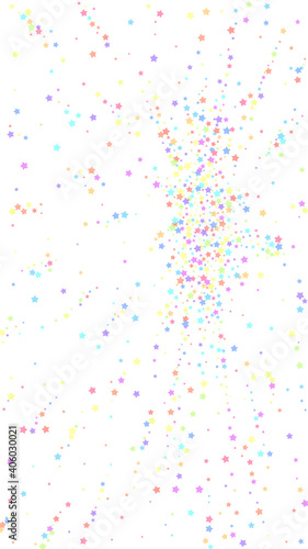 Festive authentic confetti. Celebration stars. Colorful stars on white background. Flawless festive overlay template. Vertical vector background.