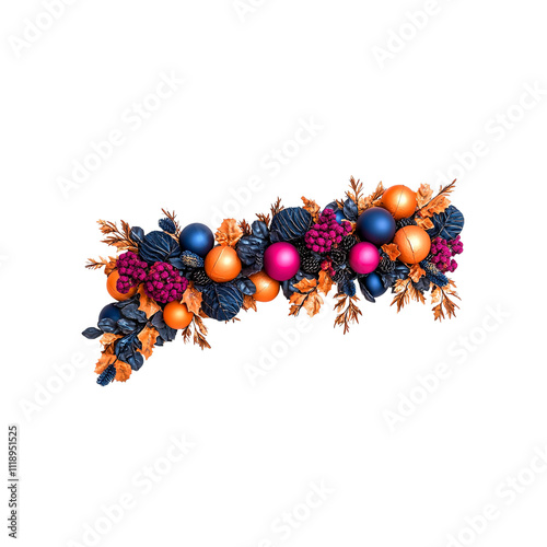 autumn, garland, fall, christmas, decoration, ornament, berry, metallic, navy blue, orange, pink, purple, gold, copper, bronze, festive, seasonal, holiday, winter, arrangement, design, elegant, luxurious, sophisticated, handcraft, hand-made, home decor, interior design, mantel, chaplet, foliage, leaf, pine cone, floral, still life, isolated, white background, vibrant, colourful
