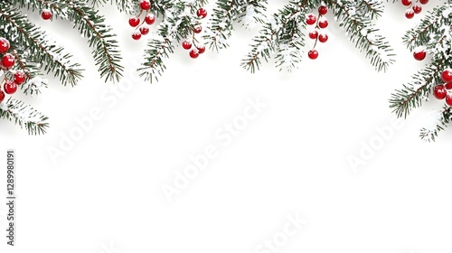 Festive Border of Evergreen Branches, a continuous design featuring lush coniferous foliage adorned with subtle holiday accents for seasonal decor.