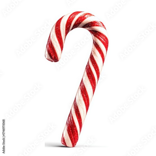 Festive Candy Cane: A classic candy cane with vibrant red and white stripes, evoking a sense of joy and sweetness, perfect for holiday season.