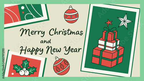 christmas, new year, holiday, greeting, card, festive, celebration, season, winter, gift, present, ornament, bauble, star, holly, berry, design, illustration, graphic, art, red, green, white, text, typography, happy, merry, joy, cheer, december, jan, party, fun, family, friends, together, wishes, congratulation, event, occasion, vintage, retro, style, classic, simple, elegant, decorative, pattern