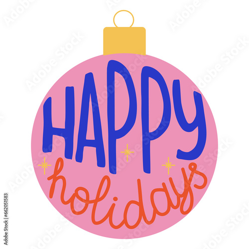 Festive Christmas ball with Happy holidays lettering, vector