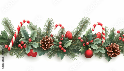 christmas, holiday, winter, festive, decoration, ornament, candy, cane, holly, pine, fir, tree branch, red, green, berry, cone, christmas, celebration, season, design, background, border, element, illustration, graphic, template, pattern, image, picture, photo, digital, art, vector, clip art, joy, merry, happy, traditional, classic, elegant, simple, colourful, bright, vibrant, realistic