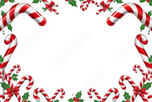 christmas, candy cane, holly, border, frame, holiday, seasonal, winter, festive, traditional, sweet, decoration, greeting card, invitation, background, copy space, blank space, celebration, winter holiday, christmas decoration