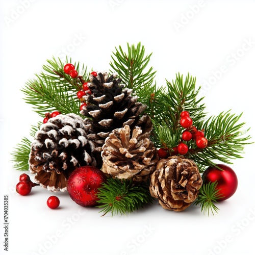 Festive Christmas Decoration with Pine Cones and Ornaments , isolated on white background png