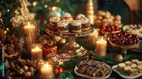 dessert, christmas, table, candle, sweet, festive, treat, holiday, food, bakery, cake, cookie, confectionery, pastry, candy, christmas tree, ornament, gift, winter, celebration, party, delicious, sweet, deliciously, holiday season, gastronomy, background, decoration, sweetness, christmas party, baking, pastry, confection, sugar, chocolate, christmas decoration