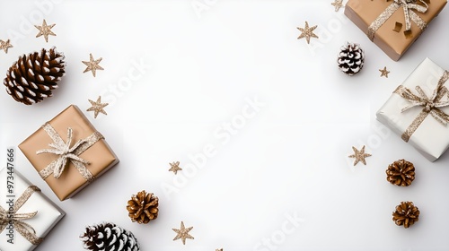 cheer, sparkle, glistering, present, star, joy, festive, gold, minimalist, elegant, simple, christmas gift, copy space, christmas gift, gift, happy, white, christmas background, holiday, design, texture, pattern, celebration, decor, christmas, pine cone, season, background, brown, winter, christmas design