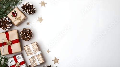 sparkling, minimal, present, festive, gold, elegant, simple, christmas ornament, gift, christmas party, decoration, white, modern, red, christmas background, christmas gift, celebration, christmas decoration, green, christmas, white background, gift wrapping, pine cone, brown, topview, winter, christmas season, holiday decorations, holiday season, holiday spirit, winter landscape