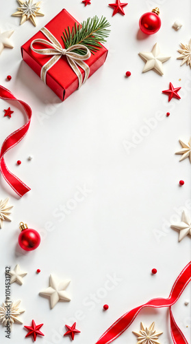 christmas, new year, winter, holiday, gift box, decor, empty, star, festive, gift, decoration, ribbon, red, white, ornament, background, bow, present, card, celebration, wrapping, seasonal, greeting, pine, december, shiny, decoration, elegance, new, year, surprise, joy, tradition, invitation, party, minimalist, cheer, happiness, sparkle, gift wrap, white background, christmas flower, christmas gift, glistering