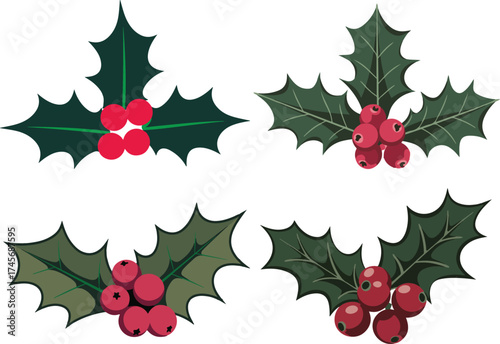 christmas, holly, berry, illustration, vector, holiday, seasonal, winter, decoration, festive, traditional, green, red, nature, plant, botanical, foliage, leaf, fruit, ornament, design, graphic, art, element, icon, clip art, greeting, card, invitation, celebration, new, year, holiday, eve, day, decor, background, berry
