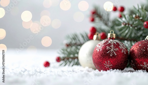 Festive christmas ornament arrangement cozy indoor setting holiday decor soft lighting close-up view seasonal celebration