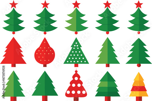 Festive christmas tree collection vector illustration scalable graphic design elements