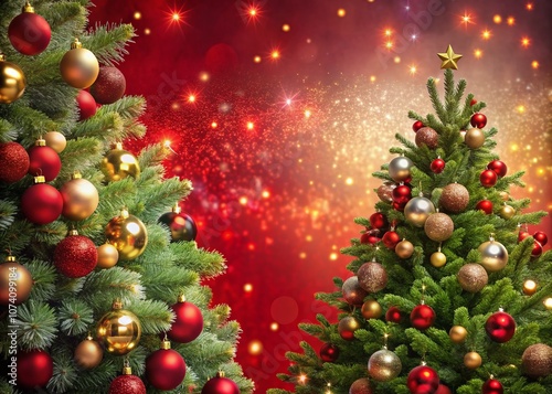 Festive Christmas Tree Decorations on Vibrant Red Background with Elegant Christmas Border for Holiday Cheer and Celebration Inspirations